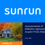 In July, Unprofitable residential solar lease company Sunrun (RUN) announced that it would acquire its unprofitable competitor, Vivint Solar (VSLR). Each share of Vivint stock will be exchanged for .55 shares of Sunrun’s common stock. Sunrun indicated that there were great synergies between the two companies.